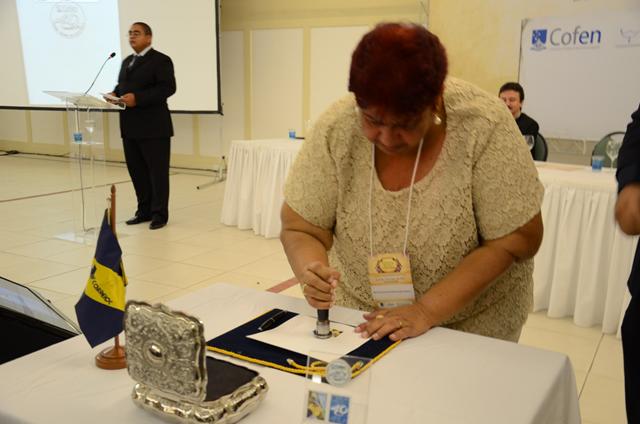 Durante o evento houve o lançamento do selo e carimbo comemorativo de 40 anos do Cofen, com a seguinte inscrição: “Há 40 anos lutando pela autonomia da Enfermagem.” Na oportunidade, o coordenador regional de negócios dos correios na Bahia, Miguel Martinho dos Santos Júnior, lembrou a importância dos conselhos de fiscalização para o zelo profissional e para a valorização da categoria de Enfermagem. O selo entrará para o acervo filatélico dos Correios como um registro histórico e cultural da história do Brasil e da Enfermagem.