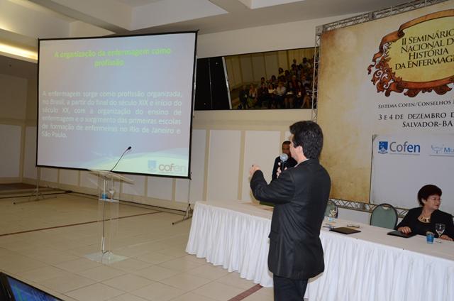 Osvaldo Albuquerque ainda apresentou uma palesta sobre os 40 anos do Cofen, fazendo uma referência histórica e de marcos legais do surgimento da Enfermagem.