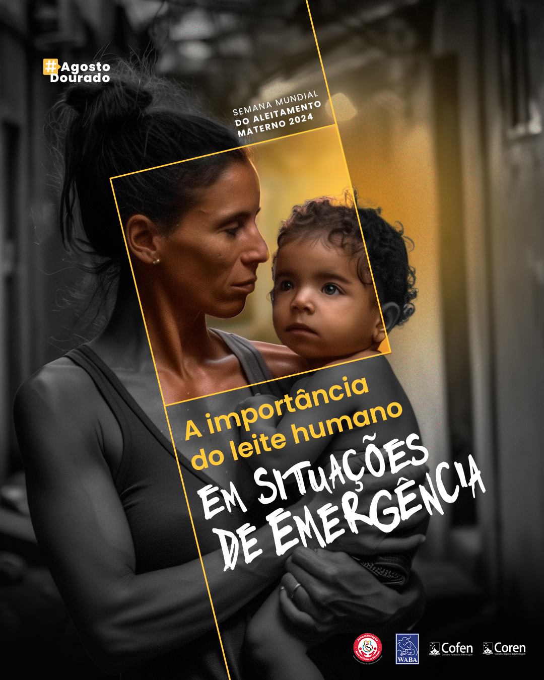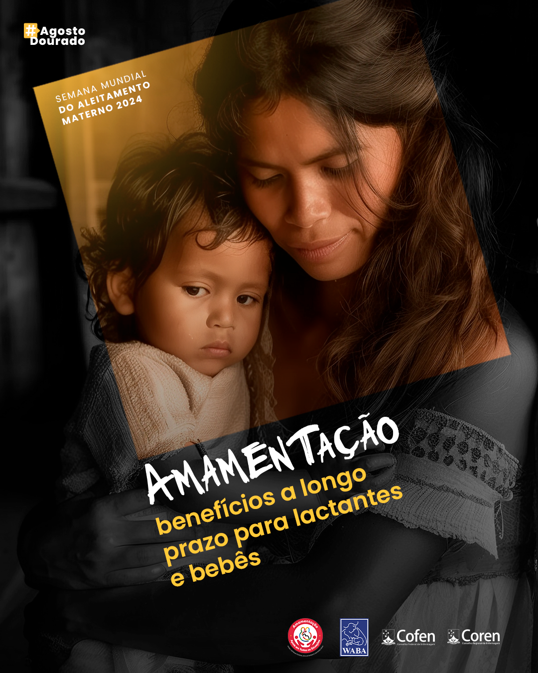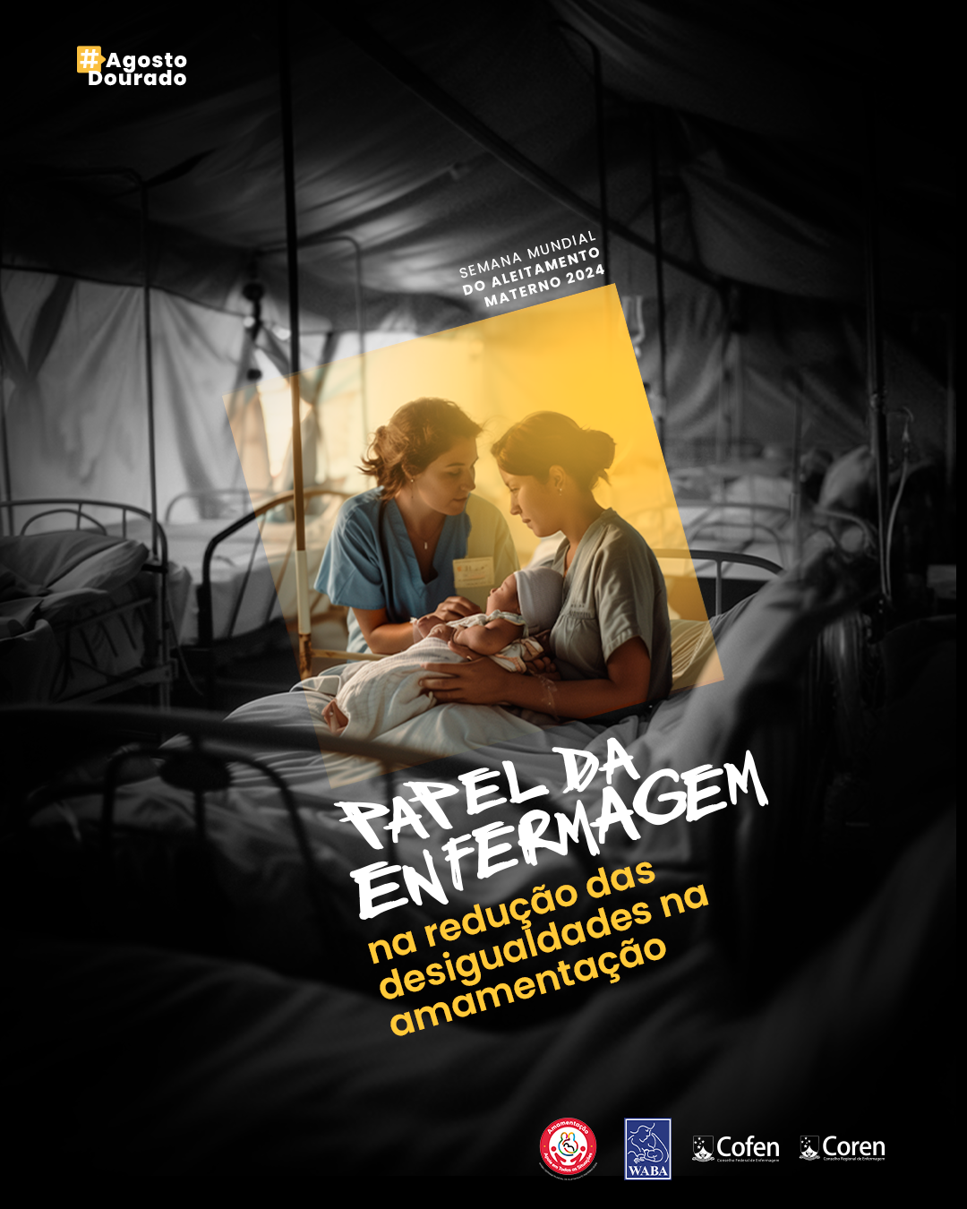 A Aliança Mundial para Ação em Aleitamento Materno (WABA) certificou o Conselho Federal de Enfermagem (Cofen) pelo apoio à Semana Mundial de Amamentação – 2024.  Com o tema Reduzindo a desigualdade: Apoio à amamentação para todos, a iniciativa destacou a importância de incentivar o aleitamento materno mesmo nas situações adversas.  “Onde faltam perspectivas, o leite humano nutre o futuro” foi o lema adotado pelos Conselhos de Enfermagem na campanha, que trouxe alguns dos cenários que podem dificultar o aleitamento, destacando a importância do apoio à lactante e o papel da Enfermagem
