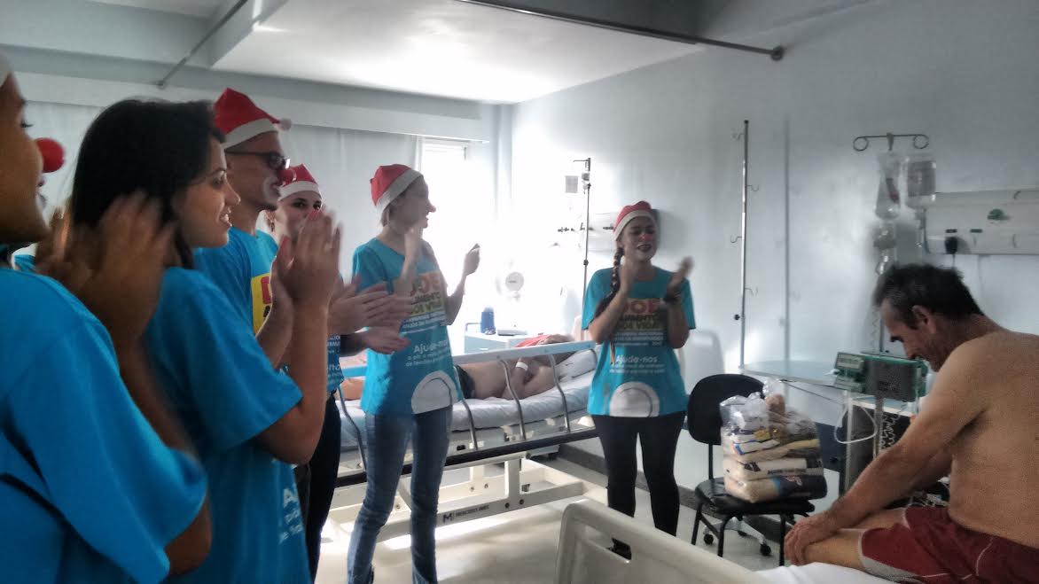 A tarde dessa terça-feira (13/12) foi muito especial para familiares e pacientes da Santa Casa de Vitória, na Capital capixaba. Crianças e adultos se surpreenderam com a equipe dos Anjos da Enfermagem. Os voluntários promoveram uma festa com bolo e tudo mais, e entregaram os produtos arrecadados durante a campanha “Doe Alimentos, Doe Vida”.