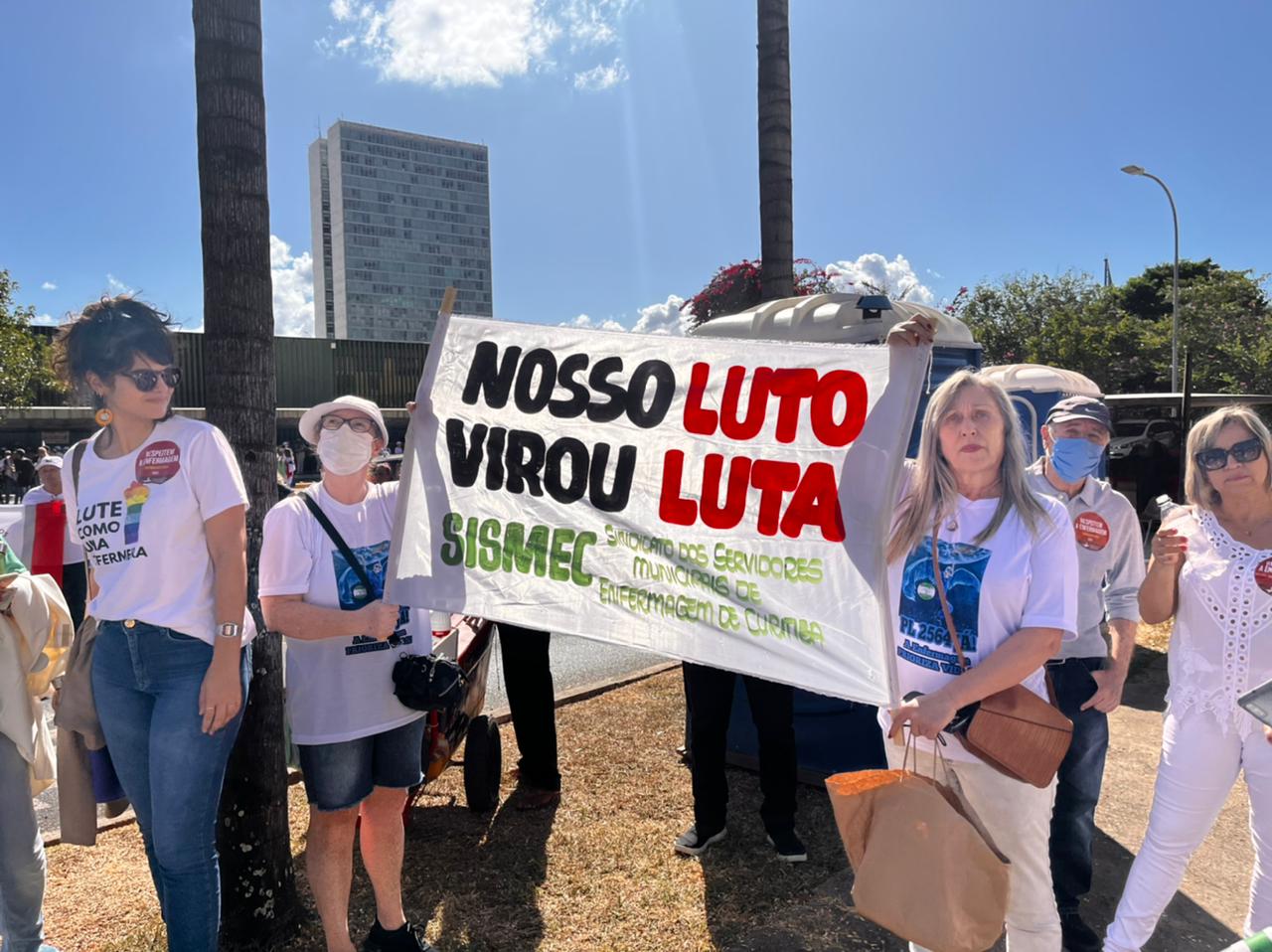 Também entre as caravanas, a presidente do sindicato dos trabalhadores da Enfermagem de Apucarana (PR), Marilei da Costa. “Estamos há mais de 30 anos nessa luta, precisamos da vitória”. Ela tem esperança que essa seja sua última vez em Brasília para lutar pelo piso. “Depois dessa votação vamos lutar por outro direito: seguimos rumo às 30 horas”, mencionando o projeto de lei que prevê a carga horária de 30 horas para a enfermagem.