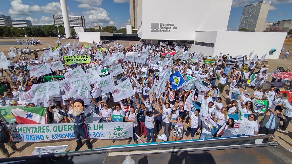 A esperança no olhar de todos que ali estavam é grande. Muitos jamais pisaram em Brasília. Outros já vieram em outras mobilizações, mas uma coisa une todos os manifestantes: a luta pela aprovação do piso salarial da Enfermagem.