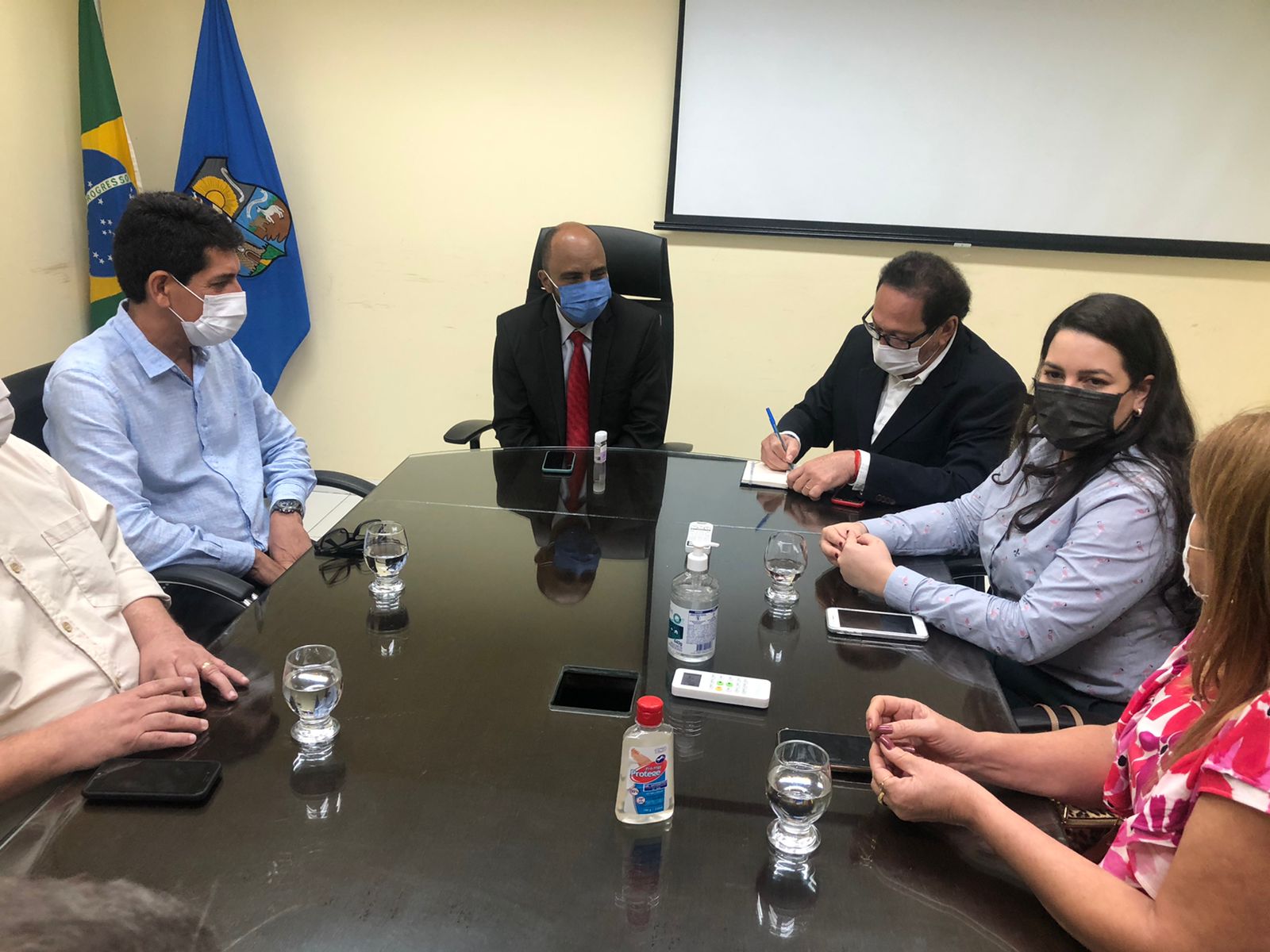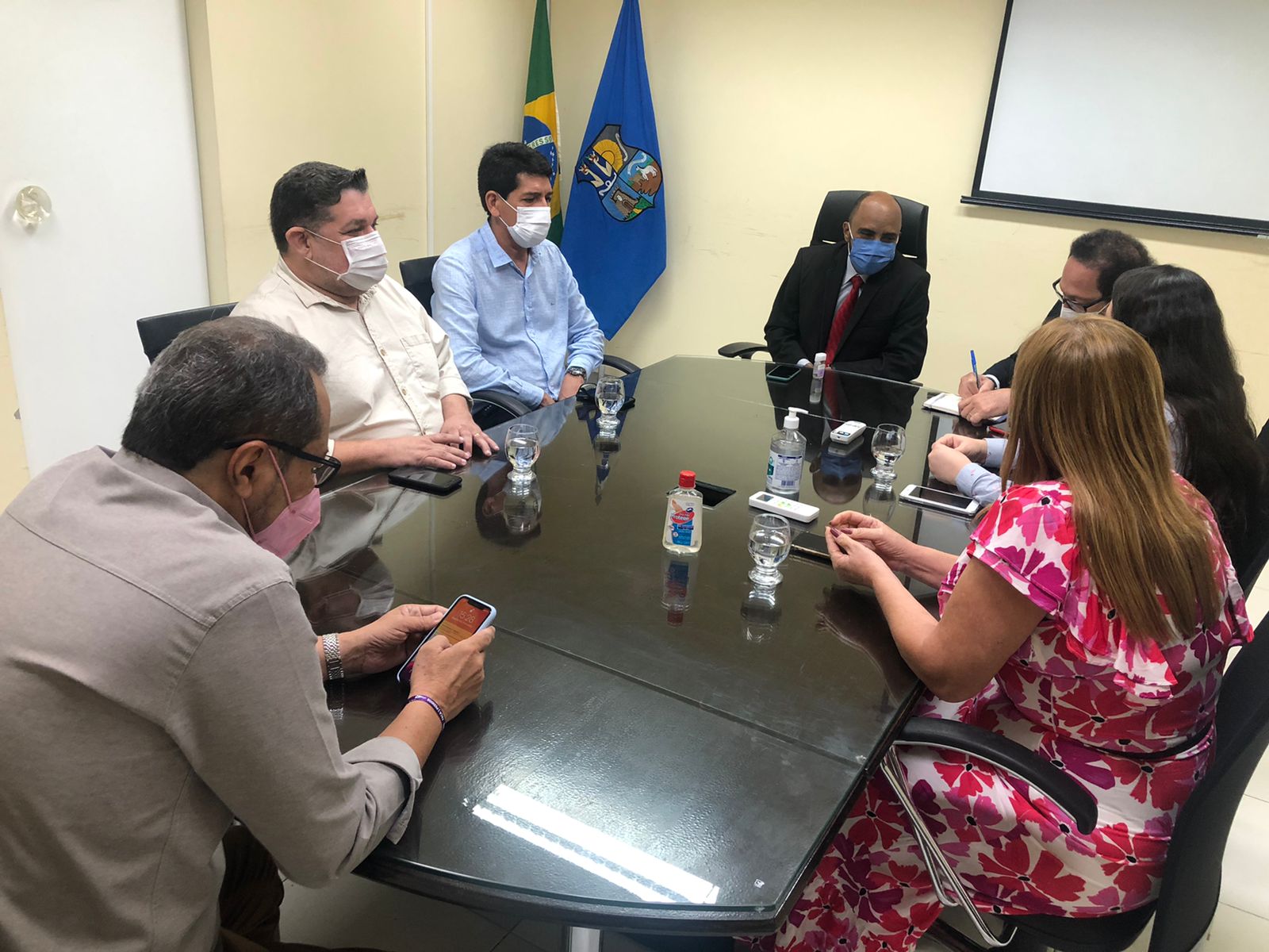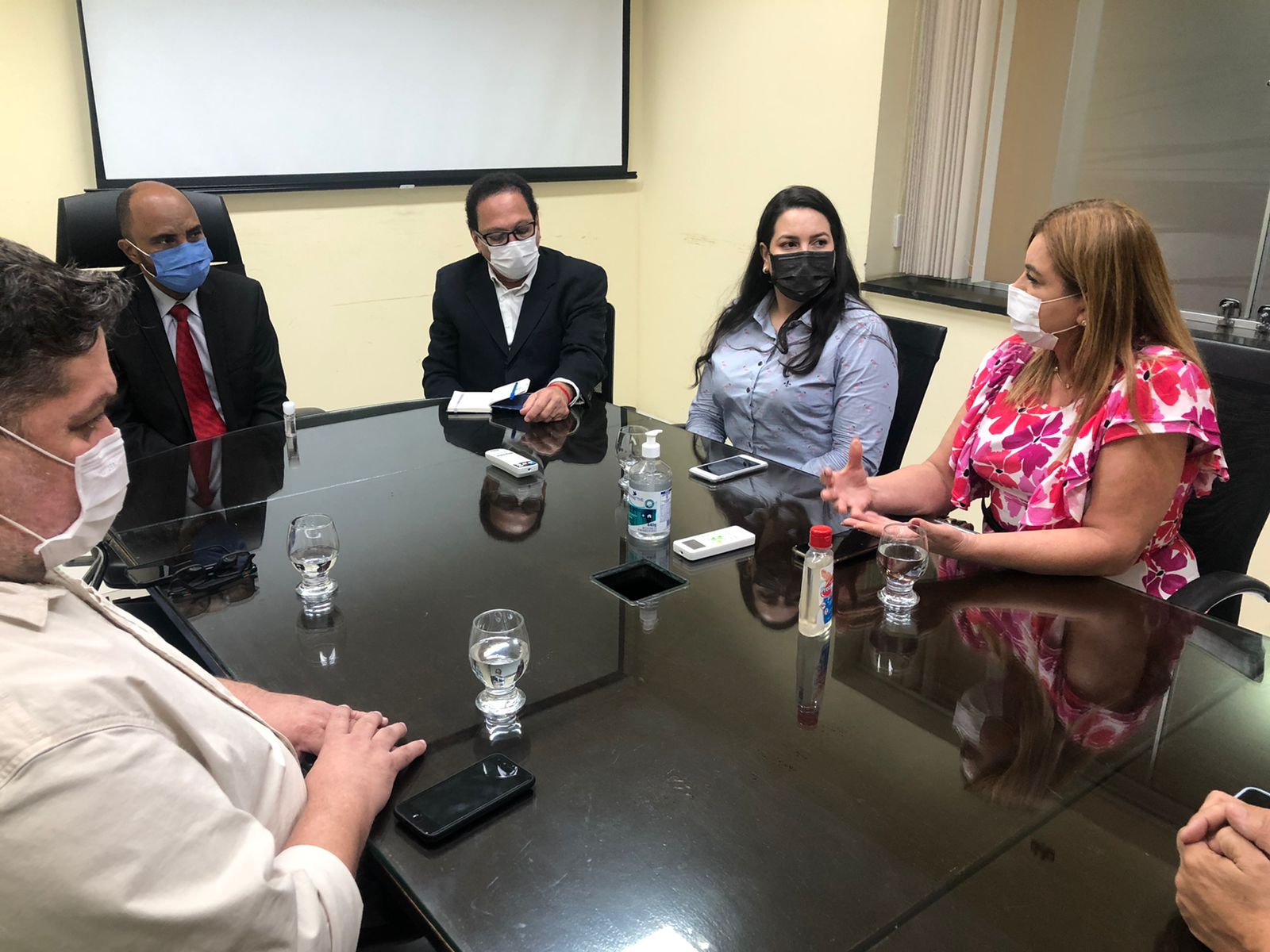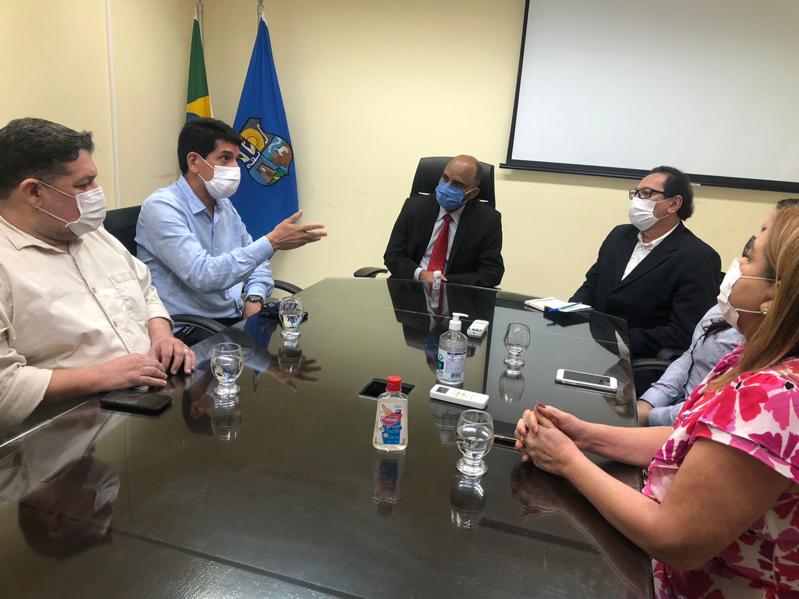 Também participaram da reunião o secretário municipal de saúde, Maurício Bezerra, o chefe de gabinete da prefeitura, Aldenor Júnior, e o assessor de gabinete, Edmilson Novaes. Maurício Bezerra evidenciou o protagonismo da Enfermagem para o andamento das campanhas de vacinação em Belém.