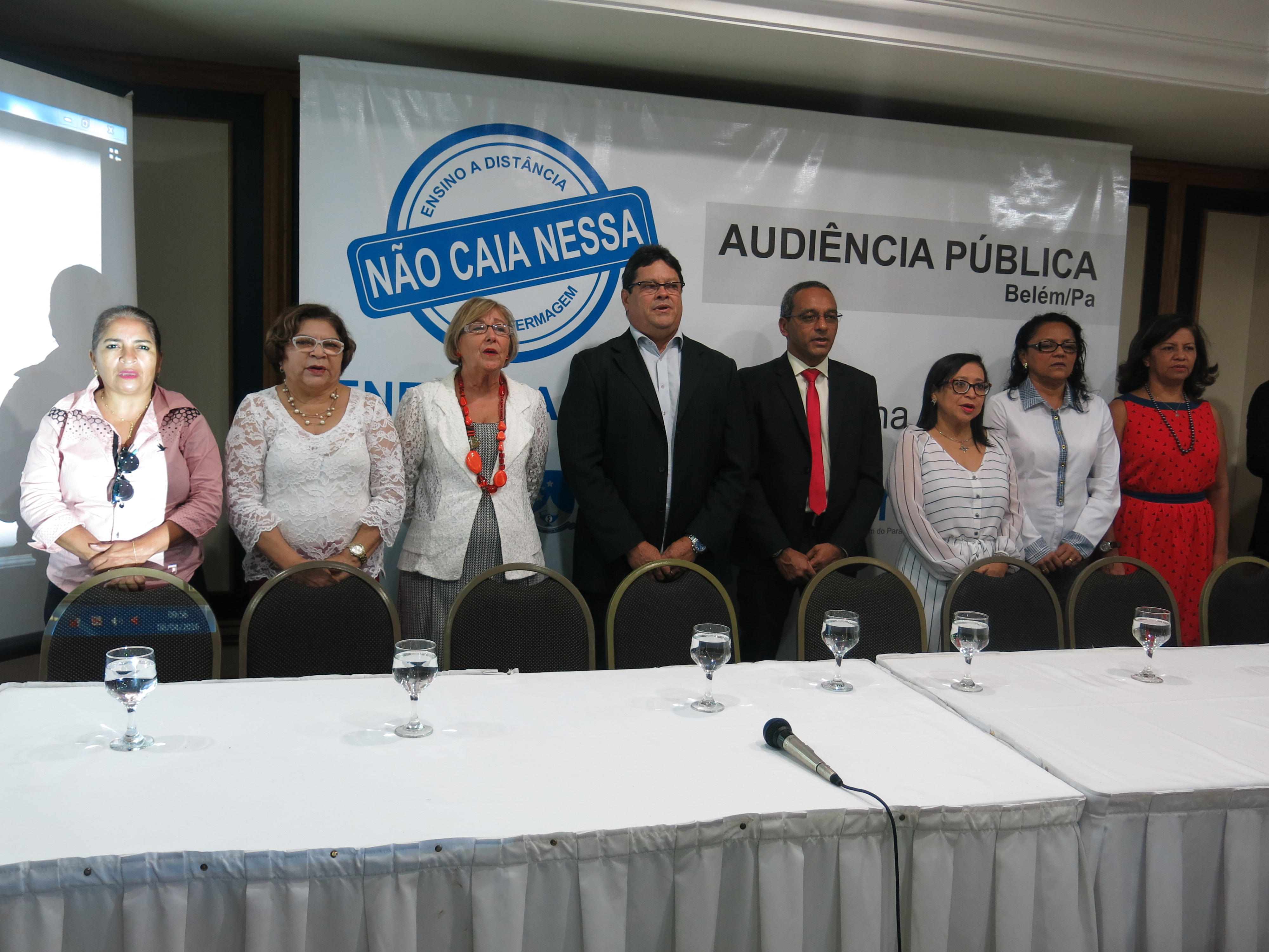 A audiência, com lotação superior à capacidade do auditório, foi marcada pela intensa participação do público. Com representantes sindicais, do Ministério Público, da UFPA (Universidade Federal do Pará), UEMA (Universidade Estadual) do Pará, do Cofen, do presidente do Coren-PA, Mario Antonio Vieira, e da Aben (Associação Brasileira de Enfermagem), a mesa de abertura destacou os risco representados pela formação desordenada de profissionais de Enfermagem, especialmente a distância.