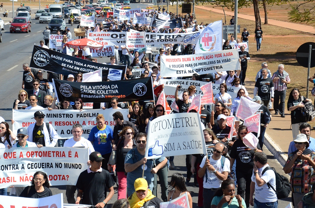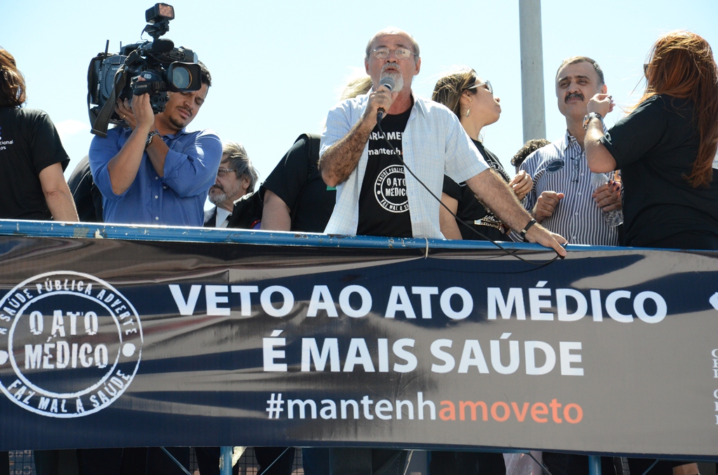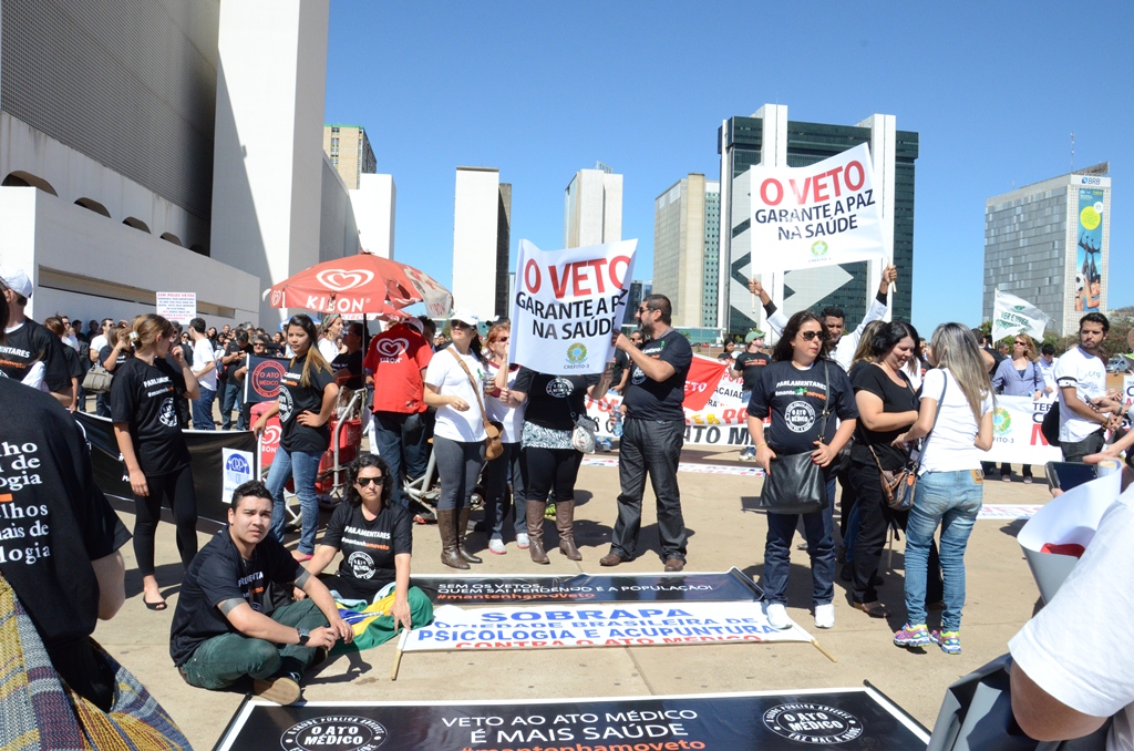 Na manhã desta terça-feira (6), estudantes, profissionais e representantes das diversas entidades ligadas à área da saúde realizaram manifestação na Esplanada dos Ministérios, em Brasília, em defesa dos vetos presidenciais à Lei nº 12.842, conhecida como Ato Médico, que regulamenta o exercício da medicina e estabelece atividades que serão privativas dos médicos, assim como as que poderão ser executadas por outros profissionais de saúde.