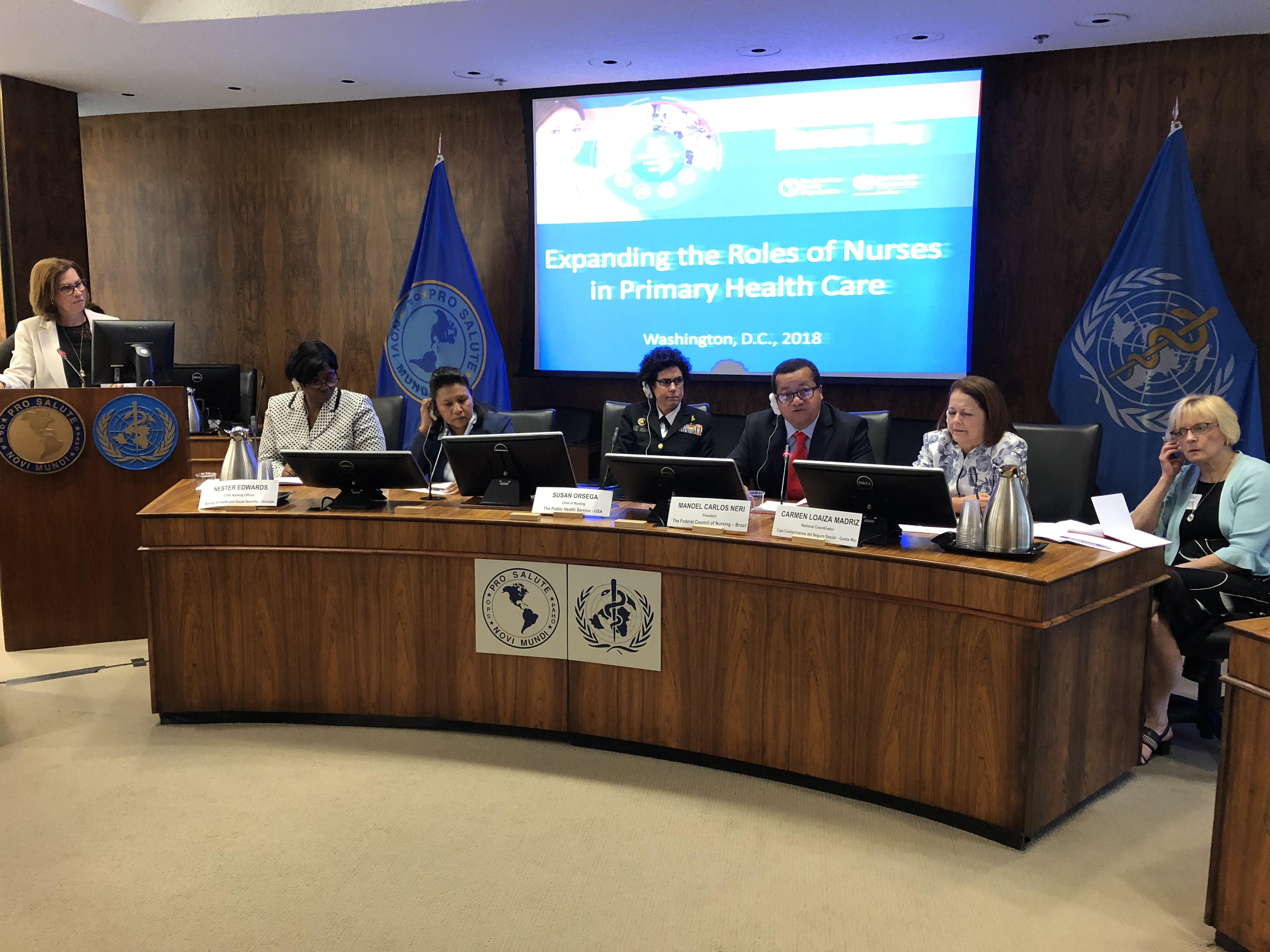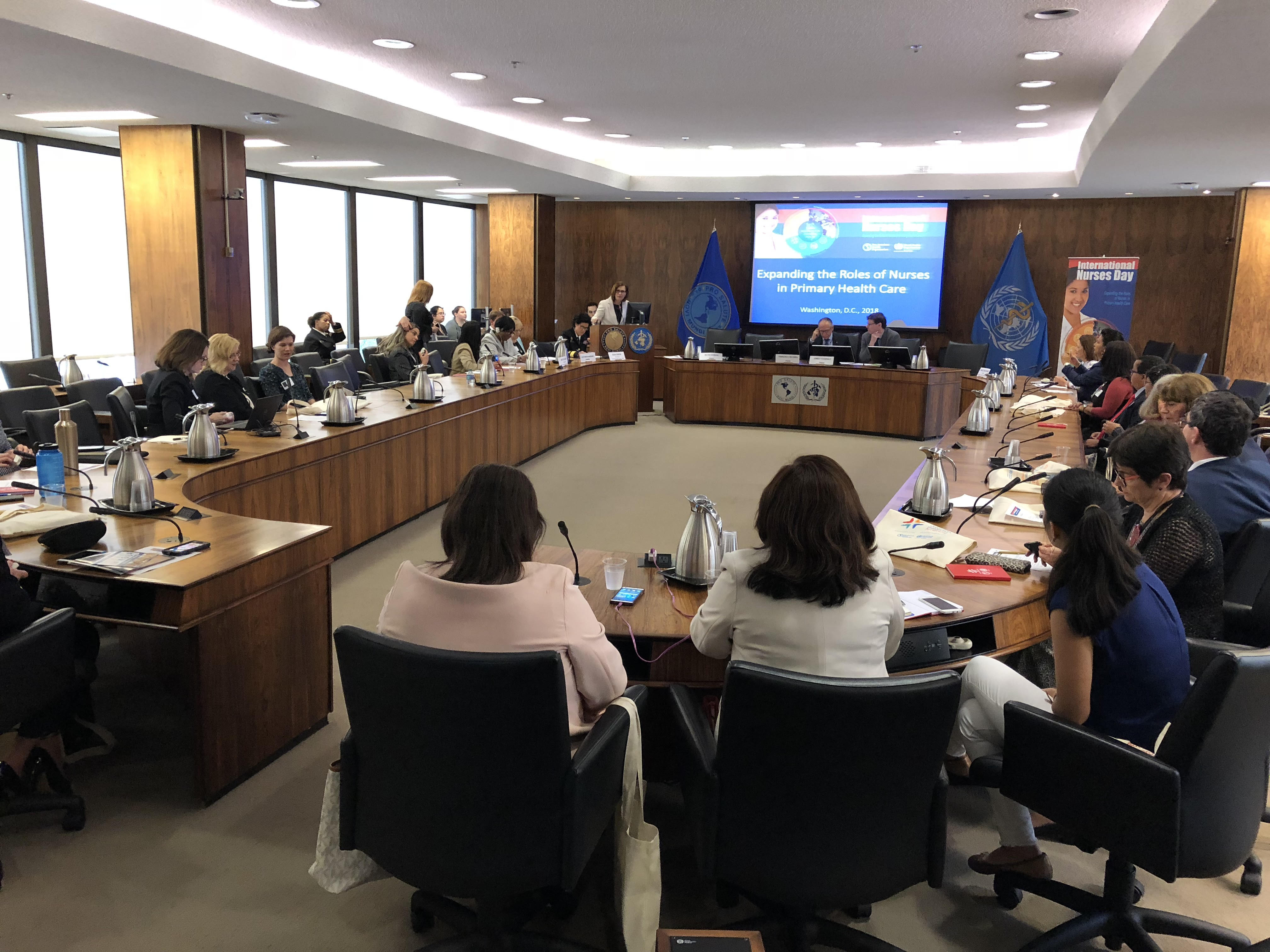 Com o tema “Expandindo o papel dos enfermeiros na Atenção Primária à Saúde”, o evento reuniu especialistas de todo o continente na sede da OPAS, braço regional da Organização Mundial de Saúde. O painel foi coordenado pela Enfermeira Silvia Cassinai, assessora de enfermagem da instituição.