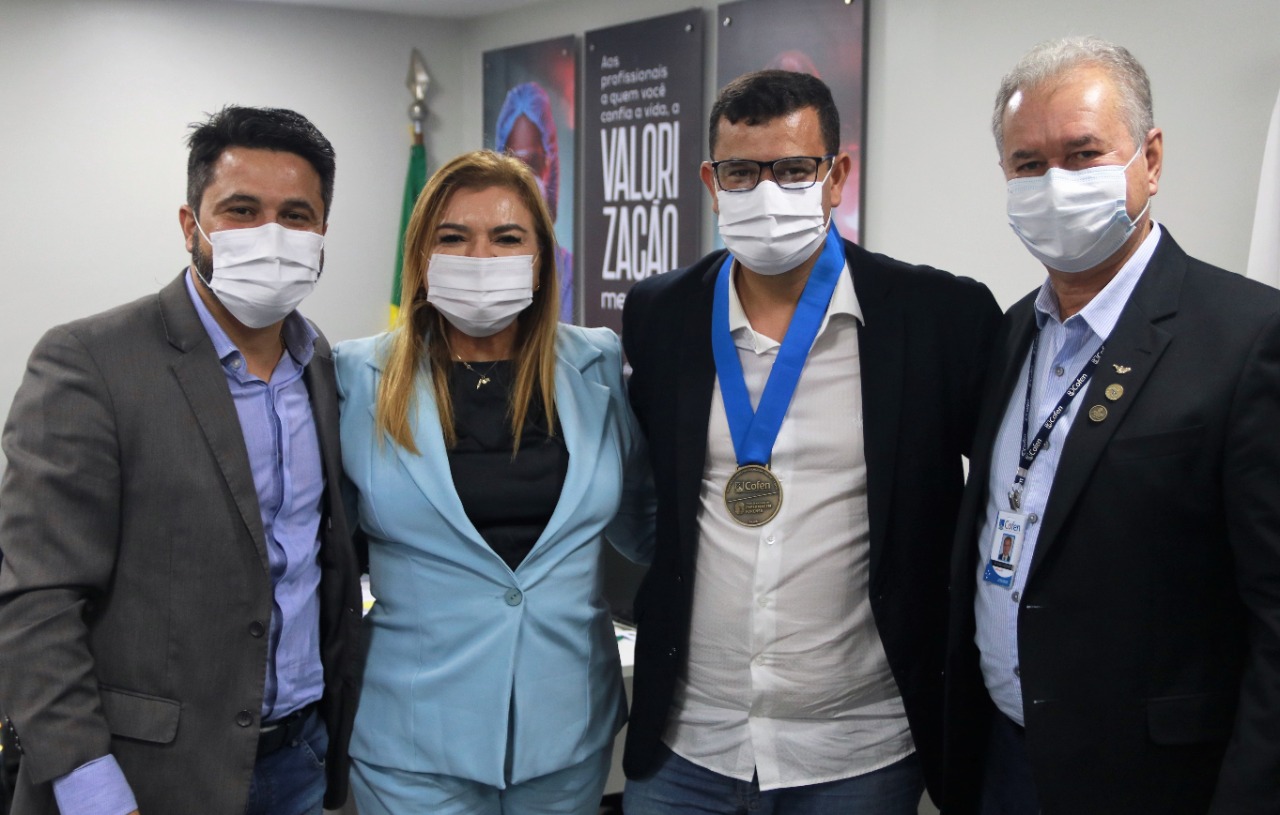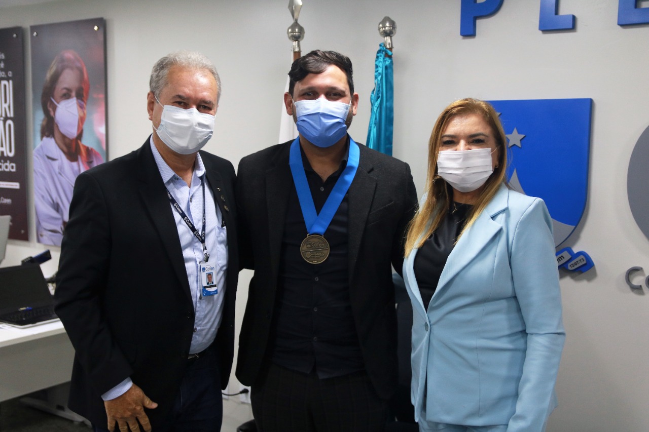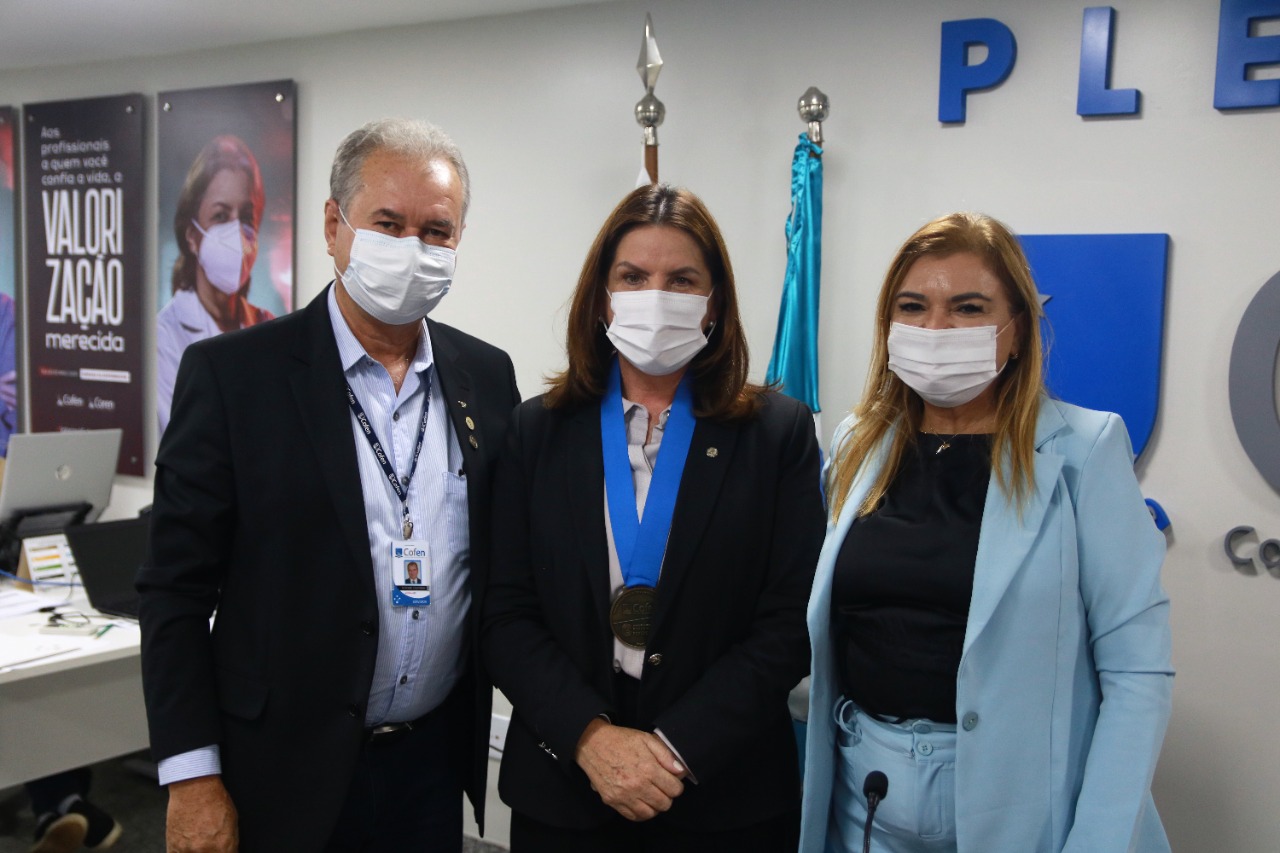 Homenagens – A reunião também foi marcada por agraciamentos. Durante o encontro, o coordenador da Comissão Nacional de Enfermagem Forense (CNEF/Cofen), Antônio Coutinho, homenageou Carmen Zanotto, Gilmar Junior e o presidente do Conselho Regional de Enfermagem do Distrito Federal (Coren-DF), Elissandro Noronha, com a entrega da Medalha Forense, representando o reconhecimento pelo incentivo e apoio no desenvolvimento desta área de atuação da profissão no Brasil. Os presidentes dos regionais receberam a honraria após a instituição da Comissão de Enfermagem Forense em seus respectivos conselhos. Zanotto, por sua vez, foi homenageada pela criação do PL 3105/21, que garante atendimento às mulheres vítimas de violência por uma equipe de saúde que seja composta por um enfermeiro forense.