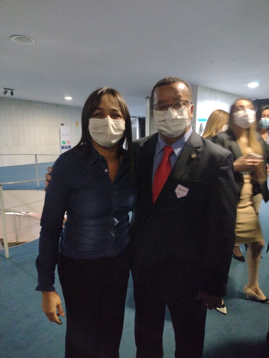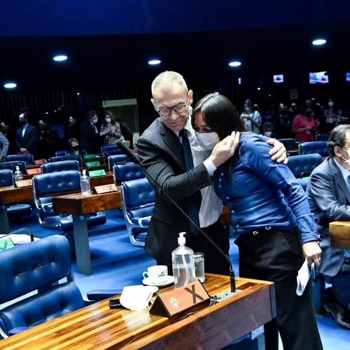Senador Fabiano Contarato comemora aprovação do PL, com a senadora Eliziane Gama