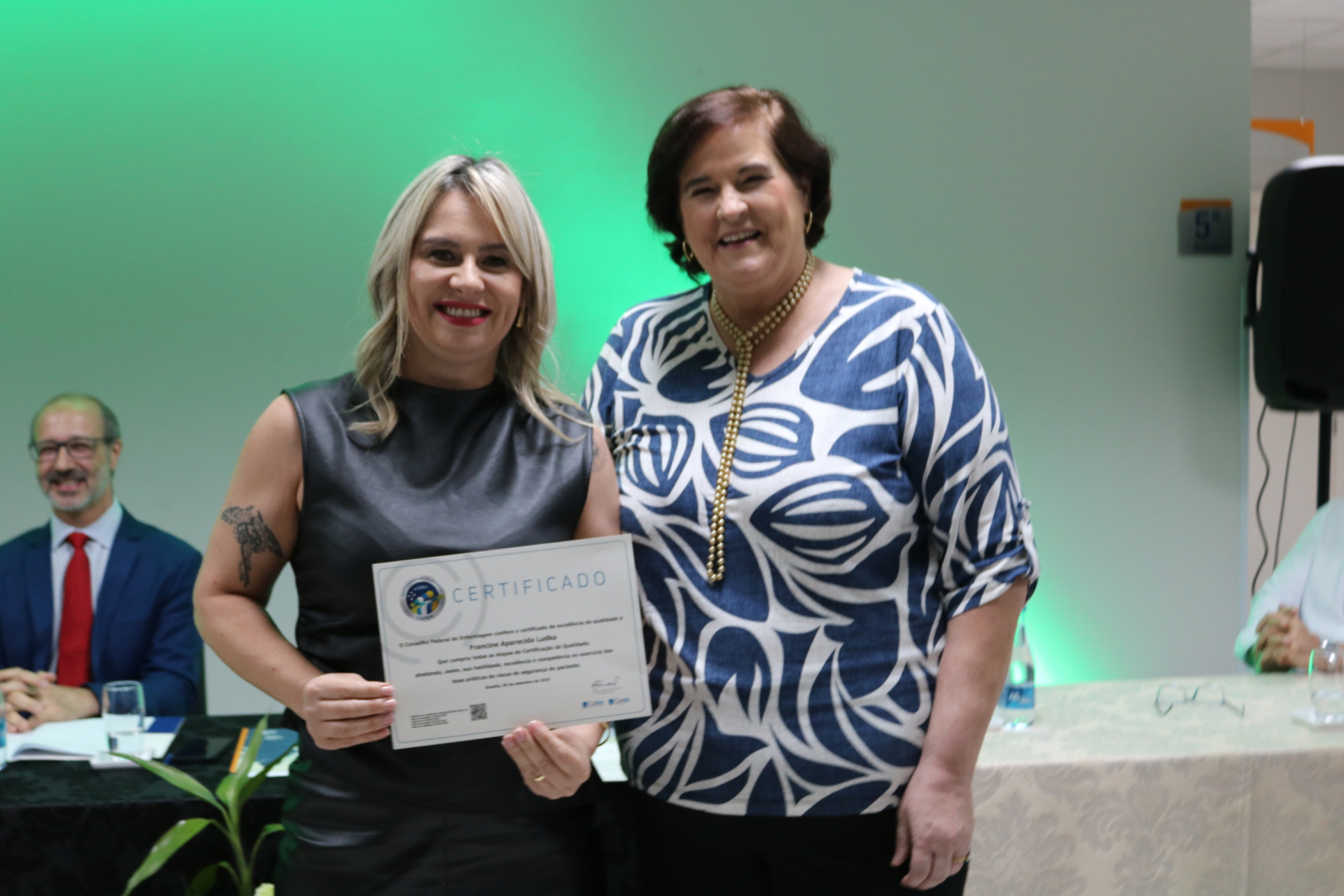 Durante a cerimônia, a enfermeira responsável técnica do Senac Joinville, Katiana Viana, recebeu uma homenagem das professoras da instituição, que reconheceram sua liderança e dedicação à qualidade do ensino. Em sua fala, Katiana enfatizou o caráter coletivo da conquista: “Esse selo não é meu, ele é nosso. Vocês brilham na sala de aula. Eu fico nos bastidores, com a missão de garantir que vocês estejam na sala de aula, ensinando com excelência para eles todos os dias”.